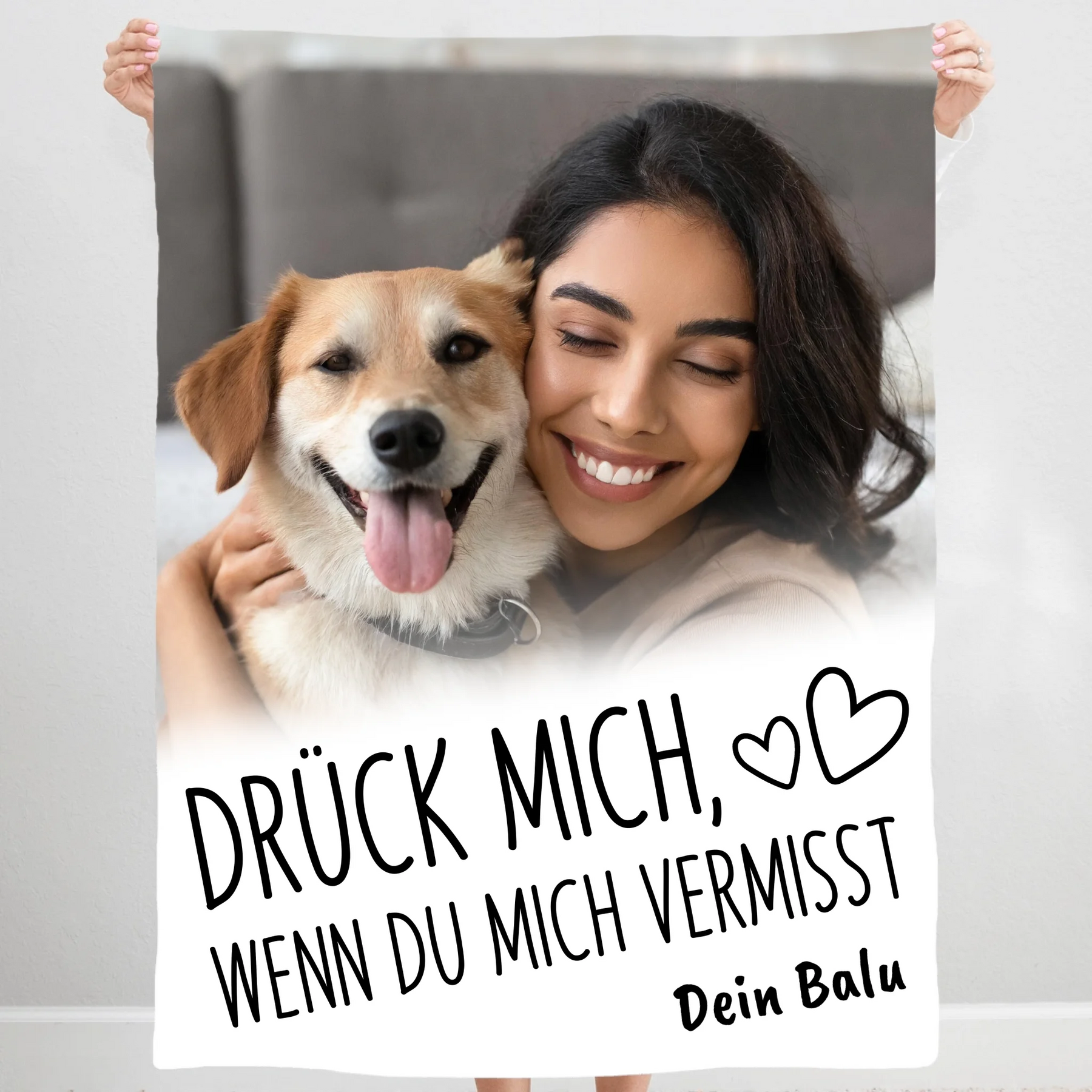 Die "Drück mich" Decke ist das perfekte Geschenk für deine Liebsten oder für dich selbst. Alle unsere Produkte sind für dich personalisiert und werden in erstklassiger Qualität hergestellt.