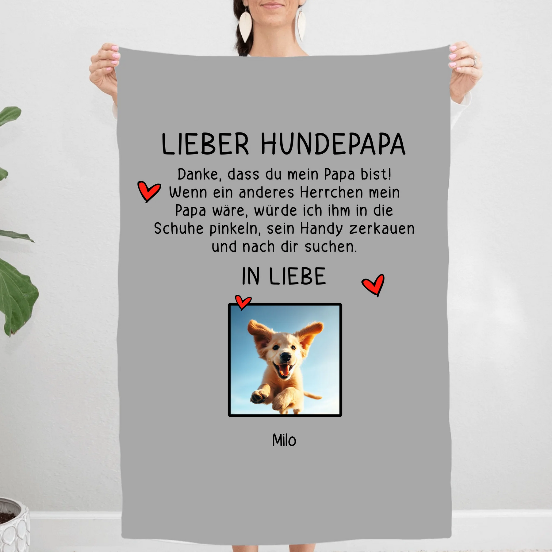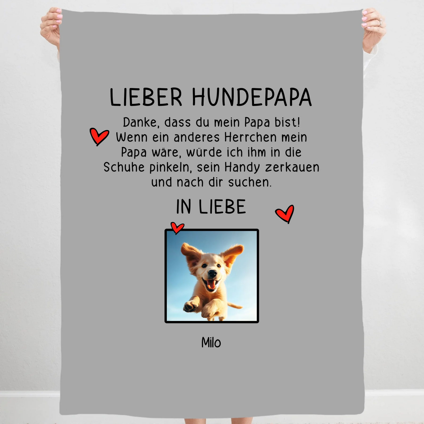 Die Lieber Hundepapa - Decke mit Foto ist das perfekte Geschenk für deine Liebsten oder für dich selbst. Alle unsere Produkte sind für dich personalisiert und werden in erstklassiger Qualität hergestellt.