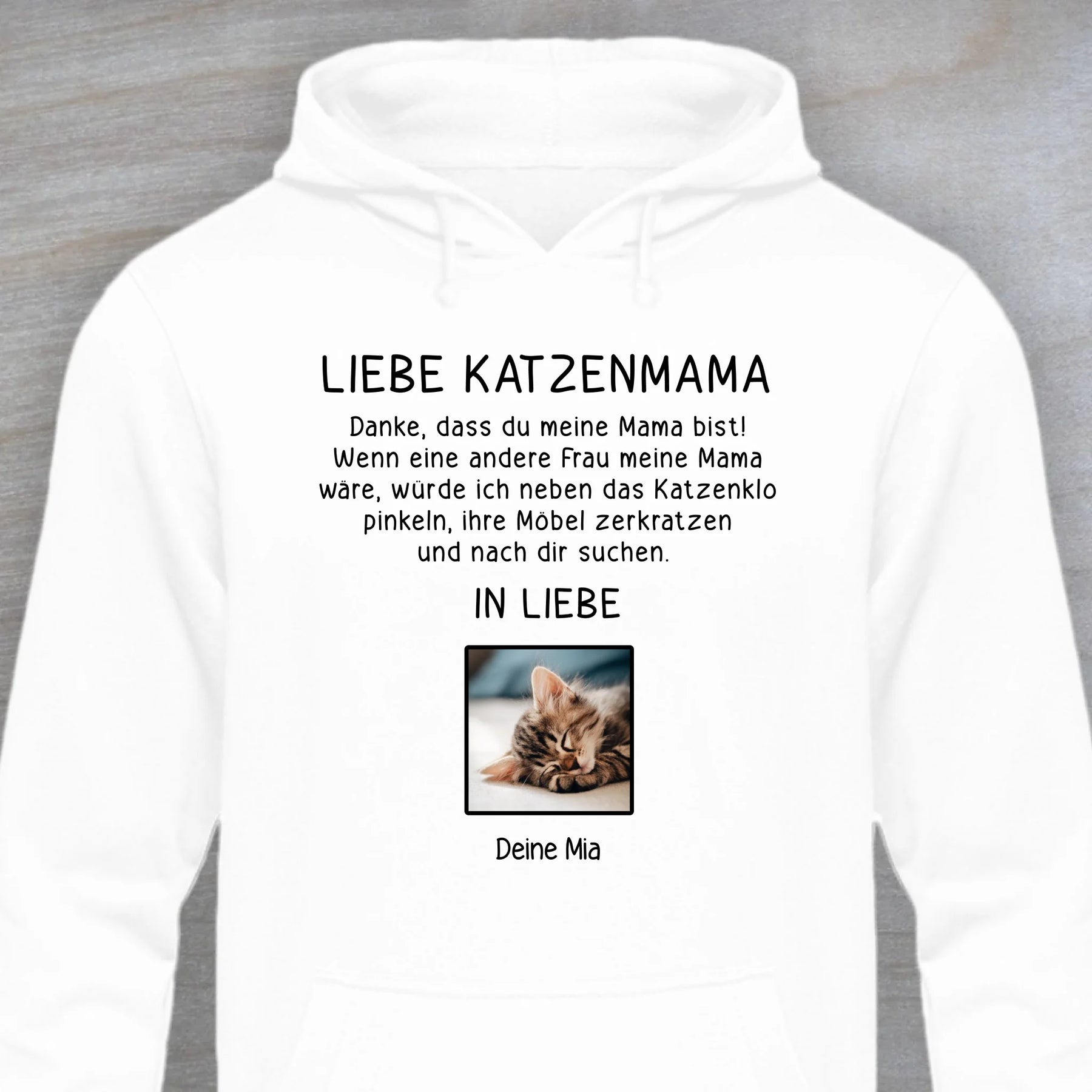 Der "Liebe Katzenmama" Hoodie ist ein perfektes Geschenk für deine Liebsten oder für dich selbst. Alle unsere Produkte sind für dich personalisiert und werden in erstklassiger Qualität hergestellt.