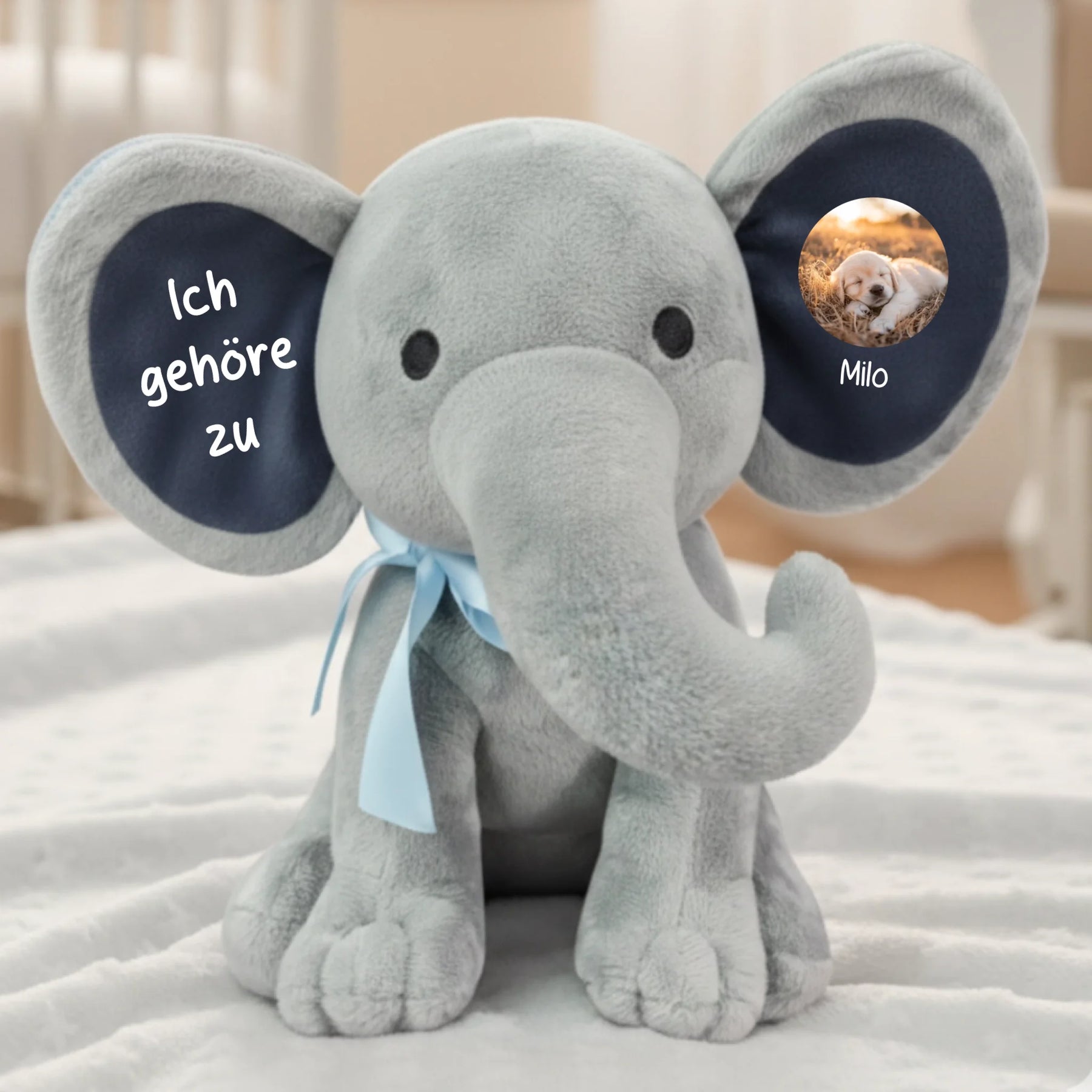 Ich gehöre zu - Kuscheltier Elefant mit Foto